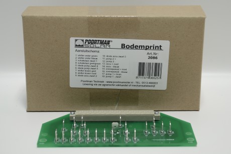 Op de bodemprint worden de pomp, accu, zonnepaneel, vlotter, etc. aangesloten. De bodemprint zit in de bodem van de regelkast geschroefd, vandaar de naam "bodemprint". De banen zorgen ervoor dat de stroom via de stuurpint geregeld wordt en op de juiste plaatsen terecht komt.